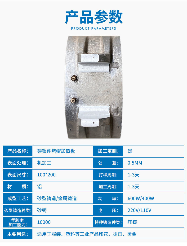 100*200铸铝件烤帽加热板