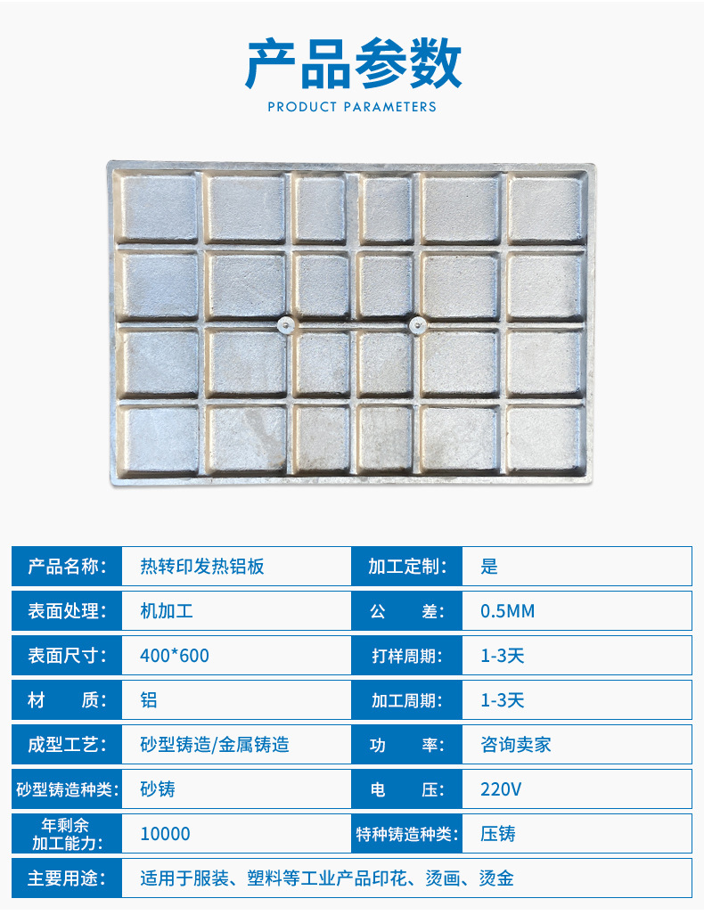 400*600铸铝件烫画机铝板